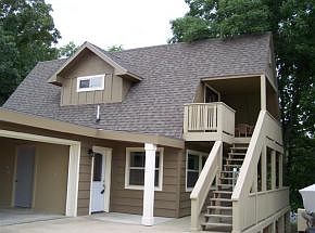 Table Rock Lake home with lake view from both levels, perfect second home, weekend getaway or family vacation home in this lake side community. Walk in to feel the warmth and comfort of being away from it all. 3 bed, 2 bath with Mission Style Quarter Sawn custom built cabinets, new lighting, appliances, tile, carpet, faucets, sinks, Energy Star windows, interior and exterior doors, Ruff Sawn Cedar Siding, propane fireplace. 3 covered decks and a 3+ car garage for all your water toys. See Features Sheet! Home Warranty. Appraised at $ 218,000.