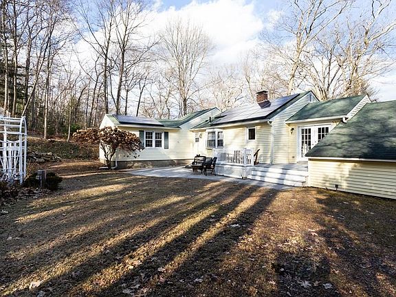 LOOKING FOR SINGLE LEVEL LIVING, LOOK NO MORE!!! This charming & updated 6 room, 2.5 bath ranch offers a living-room with fireplace & hardwods, dining-room with bay window & kitchen with granite, stainless appliances, tile & an island. There are 3 bedrooms with hardwoods & half bath off master. As you enter this home, you are welcomed by a room that can serve many purposes with a French door leading to a wonderful composite deck & beautiful patio. The yard is amazing!!! The lower level is finished & offers 3 more room, full bath & laundry area. There is a 1 car attached garage, updated windows, low maintenance vinyl siding, storage shed & solar panels. The location could not be any better, just minutes to Mass Pike.