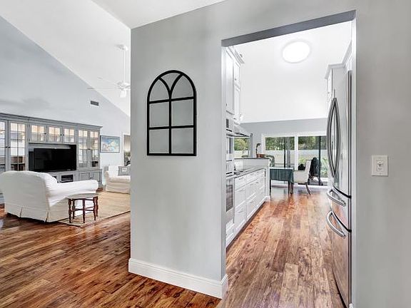 Walk to Beach or Tennis/Pickleball/Pool. Fully remodeled 3/2 beautiful single family home has so many upgrades, including impact glass, upgraded kitchen, hardwood floors and upgraded bathrooms. No detail was left out. There are also many convenience features in this home!! From skylights, pull outs in kitchen, built in ironing board, and an air jet tub in the master bath that will make spas envious as well as a separate shower. The home is bright, well maintained and ready for you to call it home. You'll love living at the Ridge.