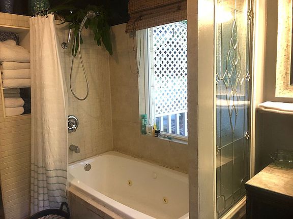 Cute galley kitchen, walk-in pantry, stacking washer dryer, jetted soaking tub with amazing view and an outdoor shower with hot water!
