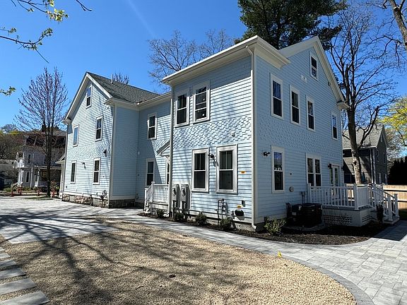 ~1 of 3 units, all new and waiting for you~Not too big, and not too small, this 4-5BR, 4BA feels just right. With 2733sf spread out over 3 levels (lower, 1st & 2nd), and no 3rd floor stairs to climb, each floor has the perfect amount of living space. Wide open kitchen with a large prep/dining island that also seats 4 of your nearest & dearest. The living & dining spaces connect via french doors to a large deck overlooking a inviting patio and yard, great for grilling & outdoor dining. The 2nd floor features a main corner BR w lovely en suite bath, 2 additional BRs, guest bath & laundry. The 2 room lower level offers both a family room with high ceilings and bonus BR or hideaway office. WalkScore of 80, so walk to the Church St YMCA or historic Farlow Park. Leave the car at home and take the express bus to Boston or catch the local to Harvard Sq or Fenway Park. Easy road trip access east or west with Mass Pike entrance just up Centre St.