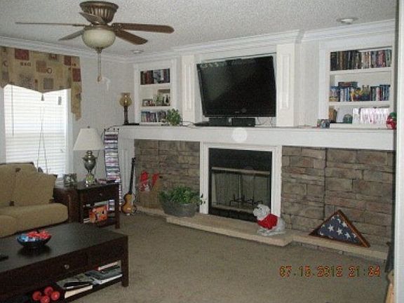 Great location! Quiet, secluded with lots of woods. Beautiful setting back off road. 3 bedroom, 2 bath home with large kitchen/dining area. Plenty of cabinets with storage galore. Black appliances, island, solid surface counters, sitting area in front of large window to enjoy just watching the wild life. Family room has fireplace with stone beside fireplce and built in shelves and place for your flat screen TV. Large utility room. Master bathroom has large garden tub, large walk-in closet, shower a nd private toilet area. All of this sitting on over 5 acres waiting for you to view and make it your new home. Call your realtor today.