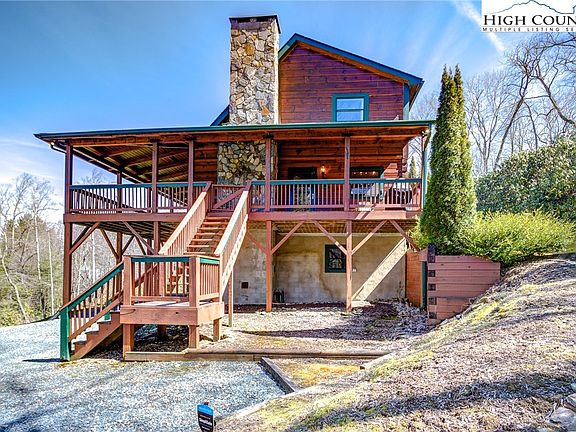 Look out! Log home in Blowing Rock with great rental potential, offered furnished!! Open house 03/19 4:00pm-5:30pm. Enjoy the open design with two story ceilings in the living room, open to the fully equipped kitchen featuring stainless appliances, a gas range, and granite countertops. Great for entertaining, or cozying up by the wood-burning fireplace in the living room. Or walk out onto the large deck spanning two sides of the home with a bed swing. The main level also includes two bedrooms and a bath, mud room/pantry area and large laundry room. The second floor houses the spacious master bedroom with a Cali king bed, a completely remodeled bathroom, and a loft area overlooking the living room. The downstairs with separate entrance serves as the ultimate entertainment zone, with a game room, bar, pool table, and bonus room with a murphy bed. Outside, enjoy the huge new stone firepit in the front yard for roasting marshmallows and making memories. There's also plenty of parking available in the front and back of the house, along with a 2-port oversized detached garage. First 6 months rental income of $25K with significant owner usage. 15 minutes to downtown Blowing Rock.