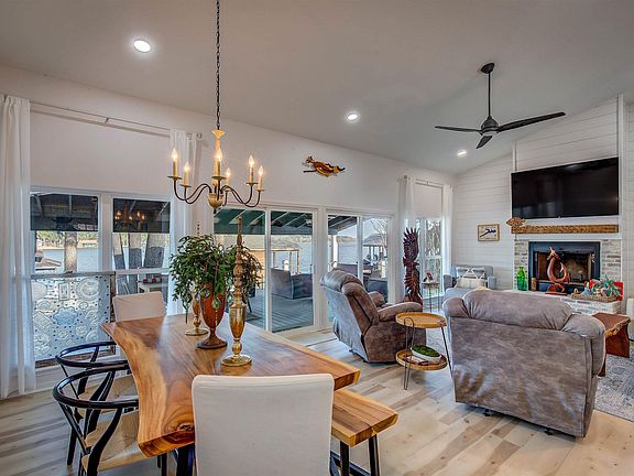 This stunning Lake Cypress Springs retreat has it all and more! Beautifully remodeled in 2021, this three-bedroom, two-bathroom home offers breathtaking main lake views and deep water. The master suite features incredible views and a gorgeous en-suite bath, while the spacious bunk room is perfect for guests. The open living area flows seamlessly onto a fabulous, covered patio, creating the ideal indoor-outdoor living experience. Eastern-facing for spectacular sunrises, the home boasts an expansive deck on the two-stall boathouse, complete with two touchless boat covers. Light and bright throughout, the home features luxury vinyl plank flooring, shiplap walls, large rooms, and vaulted ceilings. Outside, a massive fire pit invites cozy gatherings, while the newer Hardie siding on the house, garage, and boathouse ensures durability and style. Additional highlights include a detached garage with a 50-amp RV plug, a concrete circle driveway, and a whole-home generator for peace of mind. Located within walking distance of The Cove at LCS! This rare lakefront gem won’t last long—don’t miss your chance to own this perfect retreat!
