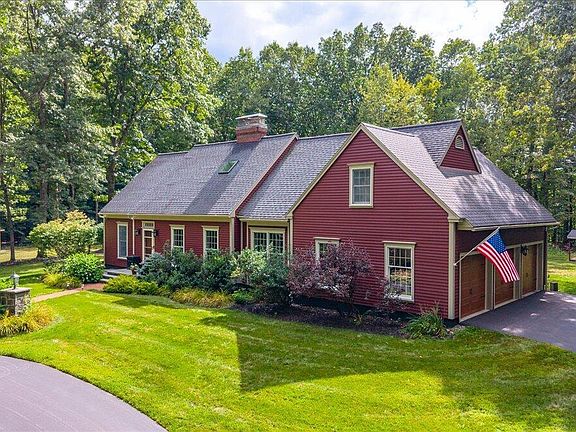 This beautiful custom built home on a 4+ acre lot is not to be missed. A private circular drive leads up to the home - Inside you will find wide plank hardwood floors throughout, custom kitchen with wolf range and subzero fridge. Wood burning rumford fireplace, wood stove, formal dining room, eat in kitchen, mudroom with radiant floors and built-in shelving in the home office.