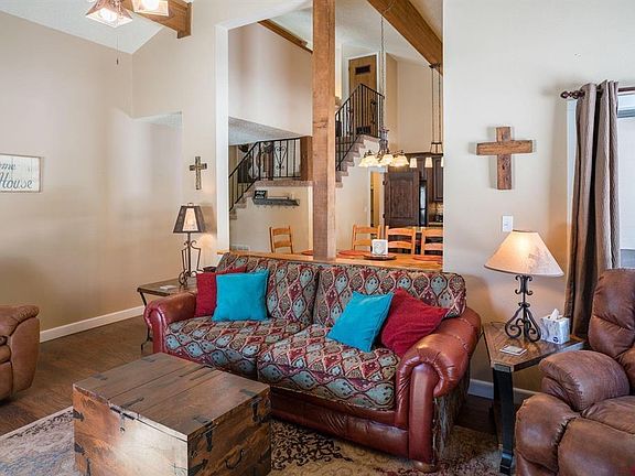 Located in Pagosa Springs, gorgeous and spacious 3 bedroom, 2 bath condo is totally remodeled and beautifully furnished. This end unit condo has loads of natural light and views. Pinon Condos enjoy being part of Pagosa Lakes Community Owner's Association with lake access for fishing and boating, community recreation center, clubhouse, cross country skiing, biking and hiking trails. Inside, find two generously sized bedrooms on the main level, each with their own baths, along with a loft bedroom area with two walk in closets. Recently remodeled, the condo features fresh paint, new luxury vinyl plank flooring, updated kitchen cabinetry, granite countertops, new appliances, new lighting, central AC and on demand hot water heater as well as designer furniture. The great room boasts a vaulted tongue-and-groove ceiling where you can curl up in front of a cozy custom river rock fireplace in the winter. Outside, a covered patio with plenty of seating, mountain views and mature trees provide a feeling of privacy and great place to unwind in the summer. Sold fully furnished, this home is move-in ready, whether for vacation use or full-time living. With its well-maintained condition, it could be a perfect short term rental!