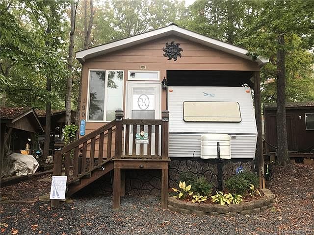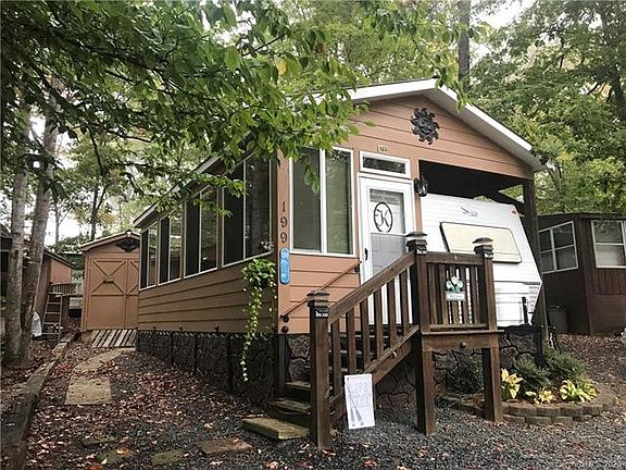 This unit is well built, maintained and decorated. The siding is Hardyplank (very durable). As you enter the unit, notice the beautiful floors, beadboard walls, crown molding and wonderful glass windows. Windows all open w/ screens so you can convert back to a screen porch & have the best of both when the temperature is just right for the breeze. Awesome barn door to the bedroom from the living room. Queen bed, good storage, real potty, bathtub/shower, W/D in kitchen, updated counters, back splash and sink in kitchen. No propane. Metal roof is 10 years old, 4 year old Diakin mini split system with two inside units active and ability for one more. 6x6 wall beams. 10x10 storage building w/ 2x6 floor joist, 2x6 flooring with power and lean to and outdoor sink to clean fish. Furniture to remain and most nick backs. The lot is long so you should be able to keep boat attached to truck. Must be with a realtor to gain access to the community.