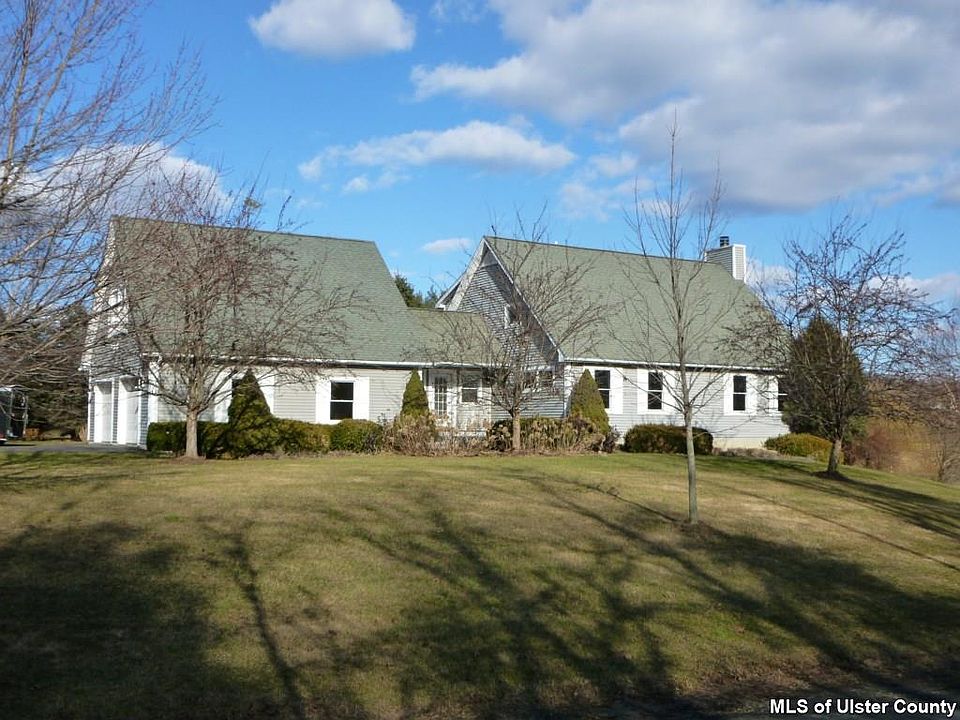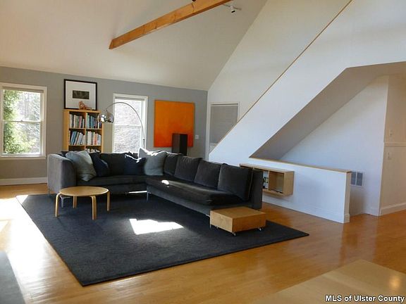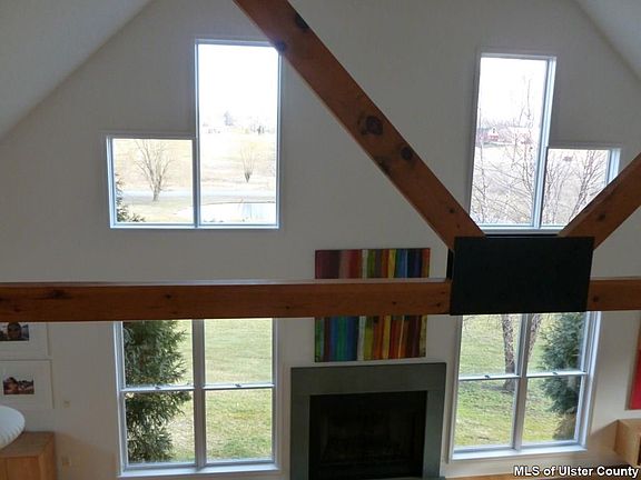 If you like the beauty of clean lines you'll have to take a look at this captivating contemporary. Built by the current owner, this home is in excellent condition and has been meticulously maintained and updated, gently loved and lived in for the last 18 years. Nestled among mature pines on 2.33 acres, there are vistas from every window, glorious sunsets over the Shawangunks to the west, pond and farm views off to the eastern valley, and 'Adirondack' forest feel from the second floor, Master bedroom suite windows. Natural light drenches every room of this sprawling home. Cathedral ceiling soars over the main living area, with efficient gas fireplace creating a warm cozy atmosphere. The kitchen, has lots of wood cabinets, pantry, stainless appliances, WOLF gas range, and rich granite countertops completing the tasteful design! Gleaming oak floors run throughout the first floor, which is also where 2 possible bedrooms are located ( currently used as a bedroom and music room) and a full tile bath, which was recently updated. The Master Suite, boasts a walk in closet, and an open bathroom: clawfoot soaking tub and a double-headed shower, with dual controls, surrounded with tile and completed with glass doors, and a separate water closet for commode. The master suite is on its own level in this unique floorpan. The lower level, boasts a bedroom, with double hung windows, and two closets and a view of the pond! In addition on this level, a laundry room, full bath, storage area and additional space which could be finished into additional living area, with it's own separate entrance. Keep reading we are not done yet......Above the oversized 2 car garage, is a fabulous office/studio space, honestly drenched with natural light from the windows looking out to the mountains. This space is light & bright with built in counters, cabinetry, work spaces, all wired for internet, heated, air-conditioned, and finished with lots of closet space! You'll never want to leave the office, if you work from here! Paved driveway leads you into the heated, oversized 2 car garage with lots of space for all the toys and the vehicles! The level yard is tastefully landscaped, with mature perennials and strategically places pines, creating a magical setting. Large deck is nicely shaded from the summer sun with a stylish retractable awning, adding a nice outdoor entertaining area! Underground dog fence. Located just south of Gardiner, with easy Rail Trail access from Denniston Road, make biking and hiking into the Hamlet a breeze! This superb location is within 15 minutes to Mohonk Preserve and Minnewaska State Park, for various outdoor experiences from climbing to hiking, or even ride your bike to parachute from the local Sky Diving Ranch! From this southern Ulster County location, everything is within a half hour...... wineries, fine restaurants, organic farms; history, culture, centers for education and spiritual enlightenment; NYS Thruway, Metro North, Stewart International Airport, and the list goes on! This Hudson Valley gem is only 90 minutes north of the GWB, for easy commute.