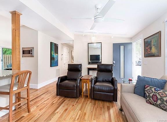 Completely renovated mid-century ranch home in desirable West Asheville. Huge corner lot just a quick stroll from lively Haywood Road and minutes to downtown Asheville. This home boasts a chef's kitchen ready to entertain, vaulted ceilings, gorgeous hardwood floors, ample storage and a sunny back patio perfect for gatherings. Three bedrooms and two full bathrooms on the main level, including an ensuite master bedroom with a large walk-in closet. Lots of outdoor living with a fully fenced backyard, level side yard and established garden beds. Oversized one-car garage with plenty of extra storage. This home was completely rebuilt in 2014 with all new systems (HVAC + ducts, plumbing, electrical, etc), the addition of a second full bathroom, insulation, drywall, metal roof, windows/doors, fiber cement siding, plumbing fixtures and lighting fixtures. See brochure and video for details.