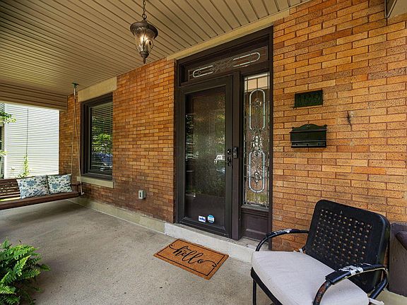 Conveniently located just blocks from Schiller Park and iconic German Village restaurants, this 3 bed, 2 bath all brick home with full-length front porch exudes exceptional character and charm with 9' ceilings, hardwood flooring, exposed brick, original solid 5-panel doors and knobs and oversized wood trim throughout. The family room is centered around a white brick fireplace with gas logs and timber mantle. Gourmet kitchen opens to dining and features shaker-style cabinetry and wine rack, tile backsplash, leathered granite counters, stainless steel appliances including gas cooktop and new refrigerator ('24), as well as a large center island with bar seating and mini fridge. Updated full bath with heated floor and mudroom complete the first floor. Upstairs has 3 total bedrooms, all with substantial storage, and 2nd full bath with heated floors and oversized shower. 3rd floor could serve as office space or secondary living area. Its separate split system and sky lights create a comfortable and light filled room. Fully fenced ('24) private backyard with patio adorned by cafe lights. Oversized 2 car detached garage. Additional updates include roof ('22) and AC ('20). Blocks from Nationwide Children's Hospital. Convenient freeway access. See A2A.
