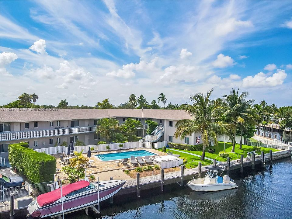 UPDATED WATERFRONT ONE BEDROOM CONDO LOCATED ON VERY WIDE CANAL IN THE HEART OF POMPANO BEACH. DOCKAGE IS AVAILABLE AND CAN BE LEASED FROM OTHER OWNERS. ONLY ONE FIXED BRIDGE AND A SHORT RIDE TO THE INTRACOASTAL. KITCHEN HAS BEEN UPDATED---STAINLESS STEEL APPLIANCE PACKAGE--NEWER KITCHEN CABINETRY, TRACK LIGHTING. LIVING AREA HAS HIGH HAT LIGHTING INSTALLED. LARGE MASTER WALKIN CLOSET WITH CUSTOM CABINETRY. BATH HAS BEEN UPDATED. A/C AND HOT WATER HEATER ARE NEWER.