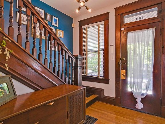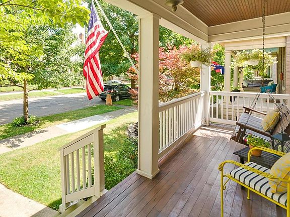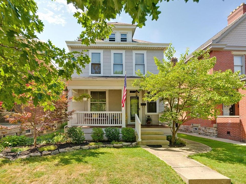 Picturesque, classic home nestled in a perfect Merion Village location near restaurants, shops and Schiller Park. Inviting front porch, beautiful hardwood floors, great floor plan, gorgeous fireplace, updated light fixtures. Airy kitchen with 42'' cabinets, white subway tile backsplash, granite counters, and stainless steel appliances. Small fish pond in the well-landscaped backyard with deck and privacy fence. Owner's suite is spacious with abundant closet space. 3rd floor has 3rd bedroom, or a den/bonus room. Detached garage. Open house Sunday 1-3pm- at which time showings begin!
