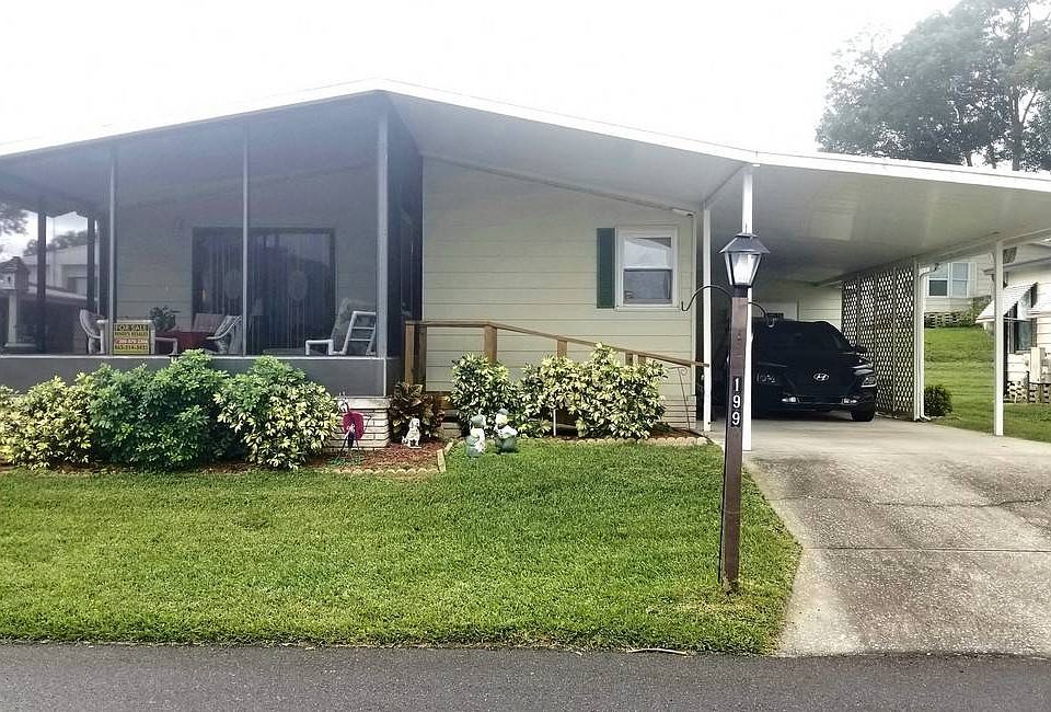 Welcome to SWISS VILLAGE, a 55+ Active Adult, Pet-Friendly, Lake-Front Community located in Winter Haven, FL. Here, you own the home but not the land. You pay a monthly lot rent of $508.00 that includes Trash services as well as Park Amenities for you and your guests to enjoy........... Snowbirds - Fishermen - Retirees who love FLORIDA Pack your bags - Everything is here waiting for you!.......... Impressive, well-kept 1985 double-wide that will amaze you with the spacious living this home offers. Turnkey & tastefully furnished, this 2-bedroom, 2-bathroom home with 1056 sq. ft. features beautiful flooring in the kitchen, dining room, hall and side entry/laundry room.... * 2015 - Central AC/Heat... * 2017 - Metal Roof... * 2020 - Garbage Disposal... * 2020 - Carpets Cleaned throughout (December).......... The living room (18.8" x 13'4") is spacious, bright and airy, sporting carpet flooring and an electric fireplace built into the TV stand. The ambiance is so relaxing...... The front-facing lanai (9'8" x 13'4") is screened and has a wheelchair ramp for easy entry...... You will be pleased with the size of the dining room. Sporting a large farm table with a setting for 6, it is still roomy. The built-in hutch is perfect to house your favorite dishes or use as a hide-a-away for game-nights with the family....... Open to the kitchen, the chef in the family will love the breakfast bar and the large pantry for extra storage...... The Owners Bedroom (11'7" x 17") is quite spacious and offers lots of closet space. The Owners Bathroom has an extra-large vanity and loads of storage space. The water closet houses the comfort height commode, walk-in shower and beautiful grouted tile flooring...... The Guest Bedroom (9' x 11') features a walk-in closet also. Just across the hall is the Guest Bathroom that has a shower/tub combo...... The laundry room is conveniently located inside and sports extra cabinet space to stow all of your cleaning & household supplies...... From the laundry, there is a side door that exits to the carport and the attached storage shed (14'3" x 10'3")........... (SOLD SEPERATELY: 2003 EzGo Golf Cart w/New Batteries, Newer Charger).......... Don't let this bargain slip away - Call NOW for a private tour