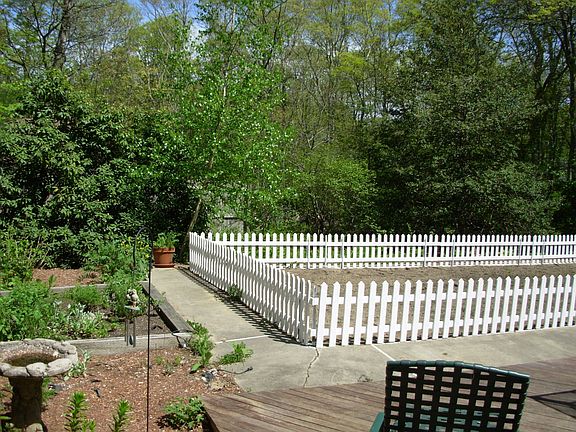 The backyard of this Cape is a secluded oasis with two large wooden decks surrounded by flower beds, vegetable gardens, an outbuilding and lots of room for family and friends to relax away from the hustle and bustle of the day. The main level features a living room with wood stove on a raised brick hearth, dining room with sliders overlooking the yard, kitchen with custom designed back splash, tile floor, two bedrooms and full bath, wood floors. Upstairs offers two bedrooms with new carpeting and the second full bath. This is a great home with newer septic and roof and gas heat and sets back from road behind a grove of rhododendron bushes for lots of privacy.