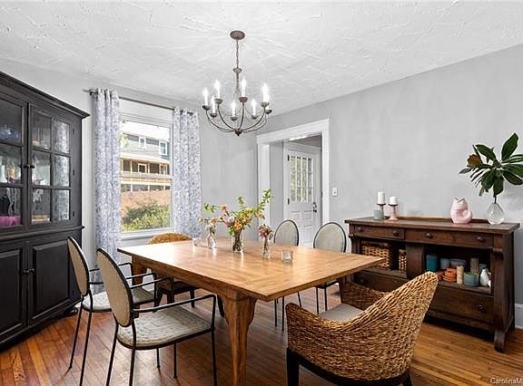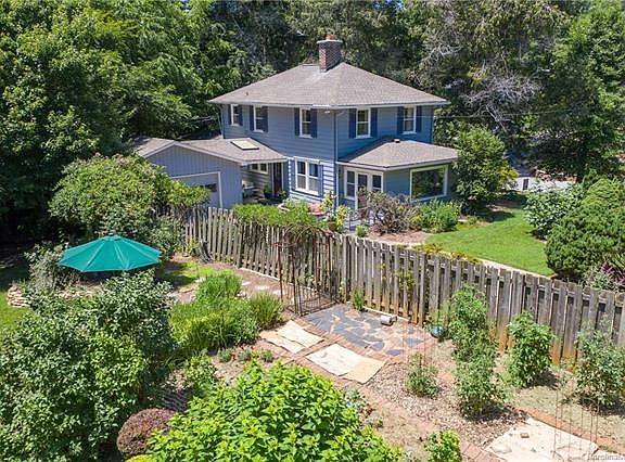 Gardeners paradise in Kenilworth! This stunning two-story Colonial home is nestled on a large corner lot. The property is impeccably landscaped and showcases a huge fenced in side-yard with organic garden beds, multiple seating and lounge areas, an arbor with swing, firepit, and more. Well maintained with a European farmhouse feel, this light-filled home offers a spacious master suite on main, updated eat-in kitchen, living room that opens to sunroom, and formal dining room. The second floor features three large bedrooms and a renovated bathroom. Beautiful period details include hardwood floors, original interior doors, glass door knobs, transom windows in bedrooms, and custom built-ins. Breezeway from large two-car garage leads to kitchen door providing ideal coverage in inclement weather. Whether you want to cozy up to the woodstove on chilly evenings or relax in your own private garden retreat, enjoy it all while living just 2 miles from Downtown Asheville!