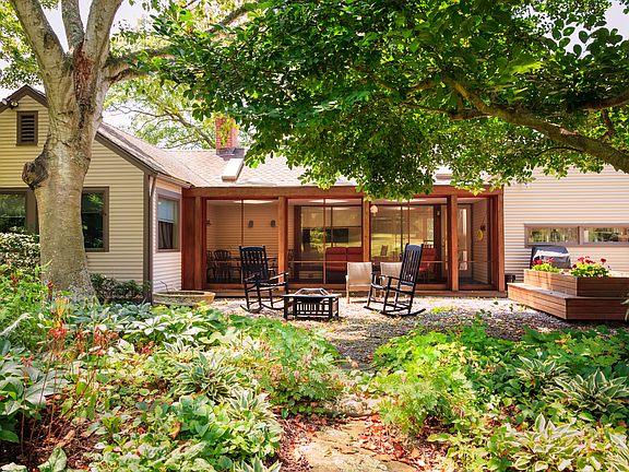Conveniently located about a mile from the beautiful Historic Guilford Green, with its popular shops & restaurants, as well as the modern Library & Community Center, this nicely updated Contemporary home is set back from Goose Lane, and showcases an open floor-plan, with lots of natural light. The location provides a very easy commute via Route 95, and Route 1, or the Guilford Train station, with connections to Union Station in New Haven, and AMTRAK train service to Boston, NYC, and Washington D.C., and beyond. Jacobs Beach, and the Guilford Marina are also easily accessible from 199 Goose Lane. On the Main Level, the spacious Living Room has a partial cathedral ceiling, with many windows & skylights, a propane fireplace with a marble mantle, hardwood floors, and easy access to the screened porch with views to the pea stone patio, & the spectacularly beautiful perennial gardens, with vibrant color from March to November. The backyard is deep-with lots of room. The eat-in kitchen also has stunning garden views, and features a Garland propane gas range, and a butcher block island which is optional. In addition to the two bedrooms and two full baths on the main floor, you will find another sun-filled room, which could be used as an office, den or study. On the lower level, you will find a smaller room which can be used as an office, with it's own half-bath, and access to the tenant's washer & dryer. The owner is living in the separate in-law apartment, on the lower level, with it's own private entrance and parking area.