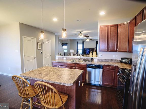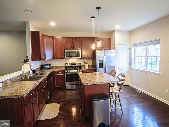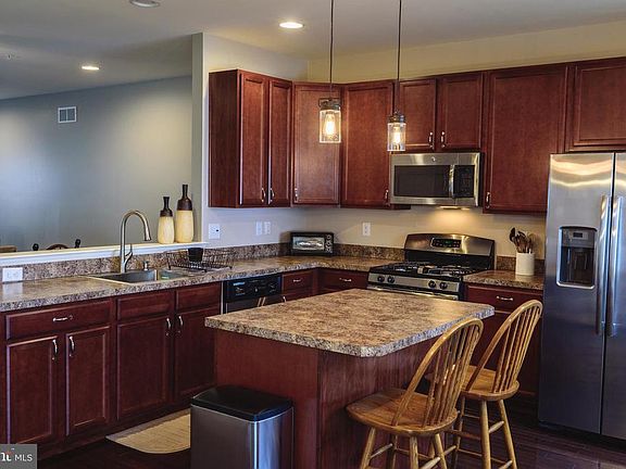 Fantastic End-Unit Townhome with 3 bedrooms, 2 full and 2 partial baths. Walk-out finished basement plus a 2-car garage. You will absolutely love the huge open kitchen with center island, stainless steel appliances, gas cooking, open to the breakfast room, which overlooks the rear yard, and great room. The entire main floor has dark wood flooring. Master suite has a cathedral ceiling, full bath with double vanity, walk-in closet plus an additional double closet. The walk-out basement is finished and has the second powder room. The association is very affordable at $100 /mo. and covers common area maintenance, lawn care, snow removal and trash removal. Tucked in the woods, this peaceful community is conveniently located to all major highways and shopping.