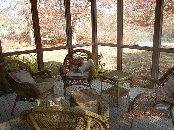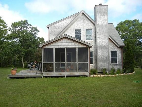 This delightful cape home is centrally located to everything you want and need! Catch a Menemsha sunset, listen to music in Oak Bluffs, get the ferry in Vineyard Haven, or hit the beach at Lambert's Cove. This home is ideal for gatherings, boasting an open floor plan that allows you to entertain with ease. The granite counter-topped kitchen overlooks a lovely dining area which leads to the outdoor back deck, and a beautiful side screened-in porch. Savor your morning coffee on the porch as the birds sweetly awaken you - you'll want to hang out all day! The dining area spills into the cheery living room with fireplace. The first floor also features a TV room that could act as a 4th bedroom. Three beds and two full baths (one as a master) comprise the 2nd floor, and the finished basement room is a great home office or bonus room. Large yard with mature pines provides optimum privacy. Close to bike path and adjacent to extensive nature trails. Option to join pool/tennis assoc.