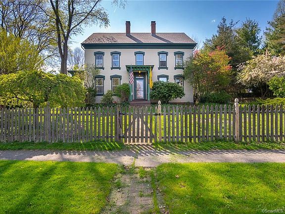 The Justus Welles Griswold House, Circa 1799. Prior to its current owners, this exceptional property had been owned by only the Griswold family. Located in the heart of Griswoldville, it was the original farmhouse and generations of the Griswold/Willard family. They also developed and owned the nationally renowned Comstock Ferre Seed Company, the first known seed company in America. Evidence suggests this brick structure was built in the early 1800s in the Federal Style as a "center hall" Colonial. Around 1870 Justus Welles Griswold, grandson of the builder, "modernized" the building in the Italianate style. The current owners beautifully renovated the roof system and cornice work again in 2016. The interior remains true to the mid-19th century with elements like the main and rear staircases, fireplace mantels, door hardware and interior trim. The kitchen and bathrooms are "modern" but not contemporary. The rooms of the main house have large "2 over 2" Victorian period windows which bathe the interior in amazing light. The exterior includes lovely front and side porches surrounded by landscaped gardens and lawns running out to the vintage picket fence. The property has a feeling of privacy and that traditional New England lifestyle. Includes approximately 1,000 square feet of additional unfinished space above the kitchen and garage.
