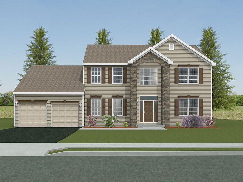 The Maine is a large home, featuring an open, two-story foyer. Upon entering the foyer, you’ll notice the study with gorgeous French doors to one side, and the living room and dining room to the other. Enter into the spacious kitchen where you'll find a large pantry and an island offering additional work and storage space, along with a bright breakfast area. An open concept between the kitchen, breakfast area, and family room creates an easy living environment. A lovely gas fireplace is the centerpiece to the large family room, filled with natural light. Here you will also notice the laundry area and entrance to the garage. Upstairs are three bedrooms and a guest bath, along with the primary retreat. The primary features a generous-sized bedroom with a large walk-in closet and a full en-suite bathroom that features a soaking tub, shower, linen closet, and double vanity.