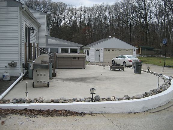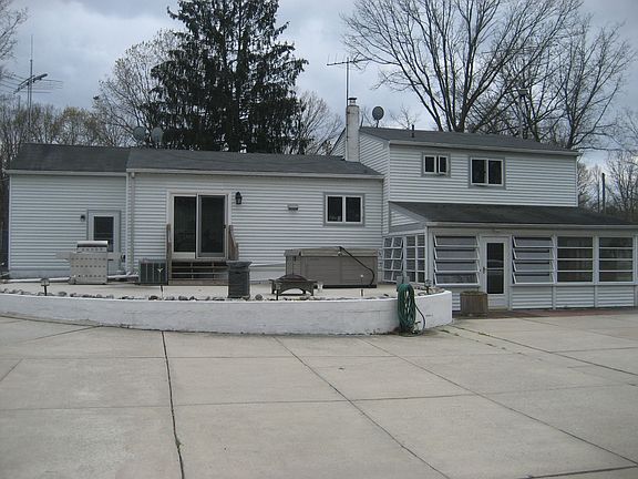 Aside from being a large home with tons of amenities, this home is ideal for any contractor, mechanic, landscaper, or car buff. Property features two detached heated garages, one 3 bay garage with 12 ft overhead doors complete with workshop, air compressor, loft,; the other garage is a 2.5 car garage with workshop, heat, new doors. Tons of parking, fenced yard. Property backs to woods.Sale subject to third party approval. Short Sale.