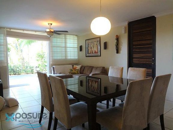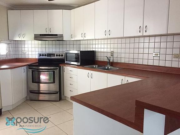 Garden apartment in Condo Vista de San Juan, located in Río Piedras, steps to Ave. Las Cumbres and Guaynabo. It consists of 3 bedrooms, 2.5 bathrooms, equipped kitchen with Stainless Steel appliances, refrigerator, stove with oven, range hood, microwave oven. A separate laundry with washer and dryer combo. Lots of closets, the bedroom closets with sliding glass doors, terrace with bar and 2 separate parking spaces..