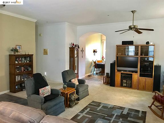 Lovely Home in Pristine Condition, Open Floor Plan, 3 Beds & 2 Baths, Beautiful Kitchen With Nook, Gas Stove & Pantry, Gas Fireplace in Great Room (or Liv/Din Rm), New Exterior Paint, Master Bedrm w/Sliding Door, Detailed Landscaping, Backyd w/Stamp Concrete, Artificial Grass, Waterfall & Pond, Shed, Solar Panels, Laundry Room w/Cabinets, Come & See, Enjoy Brentwood Community!