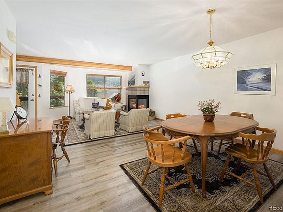 This Hideaway Townhome is quite the package for the price point! The three story townhome features a tandem 2 car garage, laundry and mud room on the entry level. The main level has a bright open living/dining/kitchen area with powder room and has updated LVP throughout. The upper level offers 2 large bedrooms with great closet space and 2 bathrooms (one ensuite). Overall, a spacious townhome floorpan at nearly 1,400 sq. ft. Enjoy mountain views to the east, along with the golf community setting at the front of the Eagles Nest neighborhood. Private rear patio backs to peaceful aspen grove, offering excellent wildlife viewing including frequent fox, mule deer and the occasionally elk or moose! Not to mention daily birds of prey in the eagle’s nest. Hideaway is located on a quiet street and offers a shared lawn area for picnicking or outdoor activities, plus quick access to many local trails for hiking, biking, XC skiing, snowshoeing and more. Just a few minutes from shopping and dining in Silverthorne or I-70 access to area skiing and Denver/DIA.