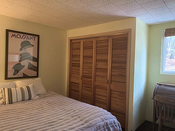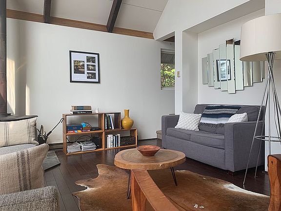 Sunlight pours through every window at this contemporary lakefront A-frame. Tucked beneath towering pines on the most coveted lake in the Sullivan Catskills, this home is the ultimate year-round getaway. Enter into the lofted living room with a wood stove. The eat-in kitchen features stainless appliances and an elevated stainless steel table. A gallery hallway leads to a spacious master bedroom with en suite bath complete with a clawfoot tub, tiled shower, and stacked washer/dryer. Upstairs, find two adorable bedrooms with bookshelf walls and carpet flooring. Storage is plentiful with three closets and an unfinished walkout basement. Swinging Bridge Reservoir is a 9-mile motorboat lake with two marinas & a bald eagle preserve. The opposite side of the lake is privately owned preserved woodland providing a private wooded view. No matter the season this home will serve as the ideal country hideaway.