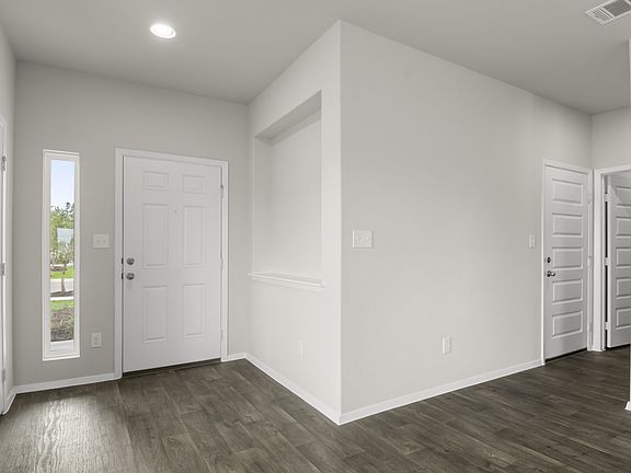 With its charming blue farmhouse-style exterior and black trim, 199 Lavender Lane stands out in the best way in Harvest Ridge—Elgin's most thoughtfully designed master-planned community. Inside, you'll find a warm and welcoming layout featuring light brown shaker-style cabinets with nickel hardware, granite countertops with a center island, and wood-look vinyl flooring through the main living areas. The mud room off the garage connects to the utility room for added convenience.A spacious walk-in closet and silestone-topped vanities in the primary suite add a touch of luxury to everyday living. And outside your door, Harvest Ridge brings it all together with resort-style amenities, green spaces, a full-time Lifestyle Director, and a brand-new onsite elementary school now open.And because it's an energIQ home built by Brohn, you're getting more home, more quality, and more value—all without compromise.