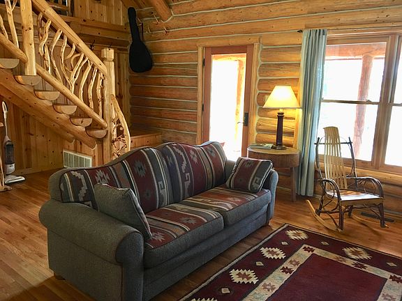 Beautiful rustic but elegant log cabin with high end craftsmanship, including hardwood floors throughout, floor to ceiling stone fireplace, soapstone counter tops, heavy, high quality door hardware, and polished bent wood staircase railings that lead to a second floor loft that accommodates four single beds. 5 acre property includes a small (9' x 7') outbuilding also of quality log construction that has been remodeled as a separate sleeping area. The cabin is nestled in lodgepole pines and aspens and looks out over Diamond Valley and a seasonal stream.