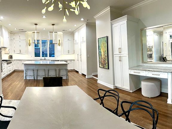 Newly renovated 6BR / 5.5 BA, 6000+ sq. ft dream home on gated, acre lot in coveted River Oaks; gorgeous eat-in kitchen w/ formal DR; Spacious LR w/ adjacent game room & bar; Luxurious primary BR & bath w/ double vanities, double shower, bathtub and walk-in closet; Dedicated guest BR, full BA, living area, & kitchenette; Arts & crafts workstation; Exercise room w/ 2 great home office options in separate wing; new putting green and patio; in-ground trampoline & hammock posts w/ playground area