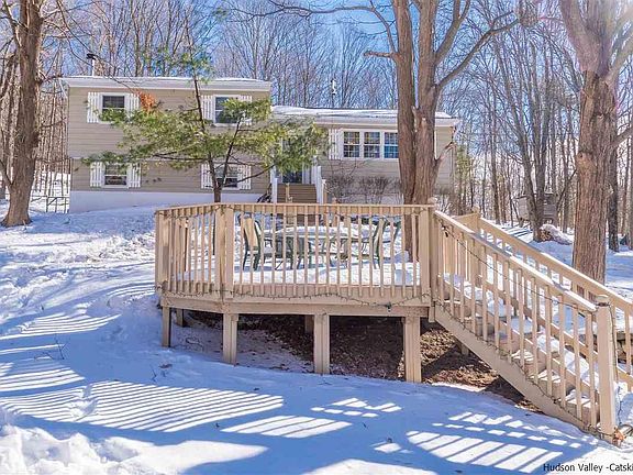 Country charmer in a terrific setting! Just minutes to town this sweet home sits on 3 acres offering tucked in privacy, fenced rear yard & decks in front and back! A private oasis for outdoor dining and relaxation. Features include a cheerful, updated kitchen with granite counters, breakfast bar & custom maple cabinets. Extras also include wood flooring in LR, DR & BRs, updated half bath & large two car garage. The home offers plenty of windows and light filled rooms along with a warm, comfortable feel. A finished lower level provides a family room, half bath and storage room ideal for home office. Enjoy total warmth with the woodstove which can heat the entire house! A 14x12 shed is great for storing your outdoor gear. The close proximity to Mohonk, hiking & biking trails, mountain climbing & all outdoor activities make for the perfect location. Enjoy it all here year round. Minutes to Village of New Paltz, bus station, thruway, restaurants & shops.