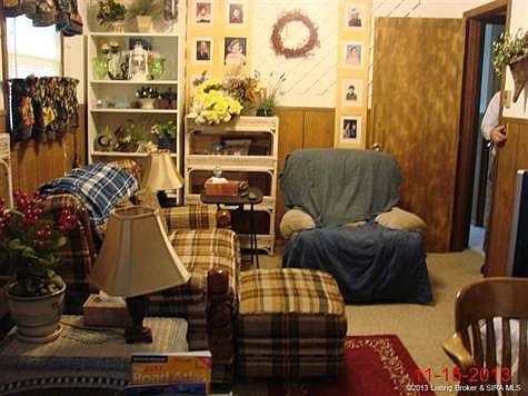 Ranch home with 2 bedrooms. Living rm w/FP. Eat-in kitchen. Den. 1 bath. Utility rm. Two one car detached garages, one has office. Patio. Partially fenced yard. Close to schools and downtown.\n\nInformation Deemed Reliable But Not Guaranteed. Information provided by the Southern Indiana REALTORS® Association, Inc. © 2010 SIRA Multiple Listing Service. All rights reserved. Brokered And Advertised By: Jack Bridgewater Real Estate Listing Agent: Jack Bridgewater