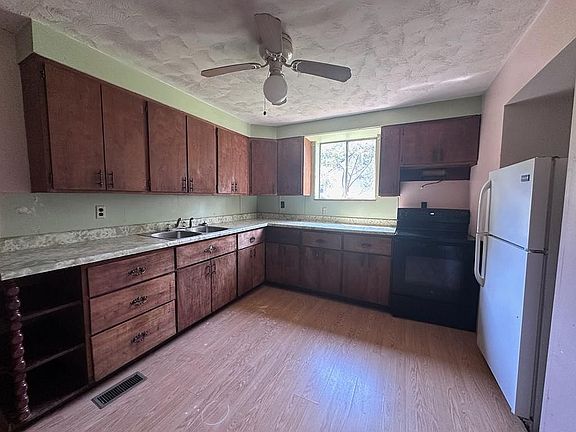 Exterior and Property Details: Size: The property spans approximately half an acre and includes frontage near King’s Creek. Roof and Siding: The house has a 3-year-old metal roof and relatively new siding. Garage: A single-car garage with additional width for extra storage or workspace underneath the house Backyard: Ample space with potential for outdoor activities; adjacent to King’s Creek and outside city limits. Interior Layout: Living Room: Features what appear to be original floors in good condition. Kitchen: Includes a stove and refrigerator, which are part of the sale. Bedrooms: Four bedrooms, with the potential for a fifth bedroom or second bathroom. Bathroom: One full bathroom on the ground floor, connected to the master bedroom via a closet. Additional Features: Family Room: Located at the back of the house with a fireplace and concrete floors. Heating and Cooling: Propane heat and central air conditioning; includes a Concord propane furnace and updated electrical wiring with a 200-amp breaker box. Basement: Contains laundry hookups, updated electrical systems, and space for storage. Move in condition, could use some minor updates such as flooring and some additional painting, basement was painted.