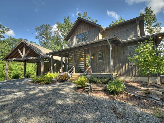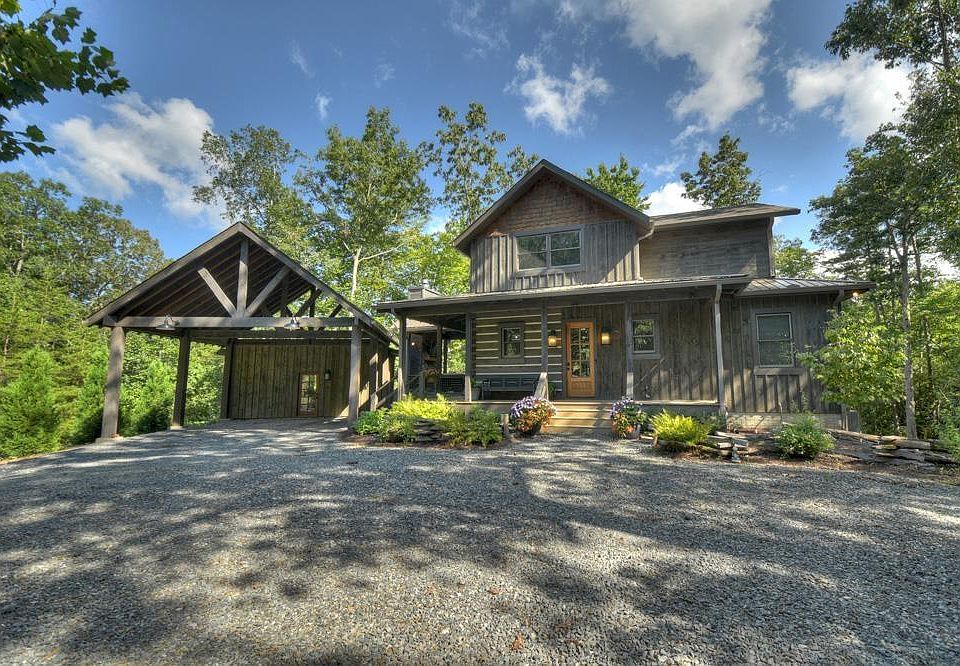 A PERFECT 10! This one has it all. This custom home features chink dovetail logs complimented w/ cedar shake & board -n- batton for the perfect modern rustic design. 3BR, 2.5BA w/ lots of outdoor living space. Wrap around covered porches w/ party porch w/ outdoor fireplace plus screened in porch off master & GR. Beautiful landscaping w/ fenced in yard w/ firepit area including lots usable yard space. Nice seasonal mtn. views w/ year round view from 2nd floor private balcony. Upgrades galore: walk in tile showers, granite countertops throughout, walk in pantry/laundry room, stainless appliances, rough sewn wide plank floors, soaring stone wood burning Fireplace in GR, 2 car timber frame style carport w/ storage room & more..Located on all paved rds in highly sought after Mountain Tops community very near downtown Blue Ridge.