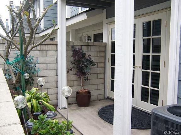 Beautiful End Unit 2-Story Condo, 2 bedrooms, 2.5 Bath, Immaculate Condition!! No one above or below. Features include: Double pane French wood windows and doors throughout, newer tile floor downstairs, smooth ceilings upstairs and downstairs, cozy living room with black granite fireplace, French doors open onto the front private patio, Dining Area, remodeled gourmet kitchen with stainless steel tiled back splash, recessed lighting, newer appliances, newer air-conditioning with programmable thermostat, half bath downstairs, huge Master Bedroom with walk-in closet and French doors opening onto the upstairs balcony. Upgraded master bath with 2 separate Vanities, large Secondary Bedroom adjacent to Full Bath with shower over tub. Recessed lighting and ceiling fans in all bedrooms, plantation shutters throughout, Newer Interior paint, CAT-5 & Cable Wiring installed inside walls throughout, 2 Car attached garage. The garage features additional storage with custom built cabinets, overhead racks, and full size laundry area. This will not last! A must see!
