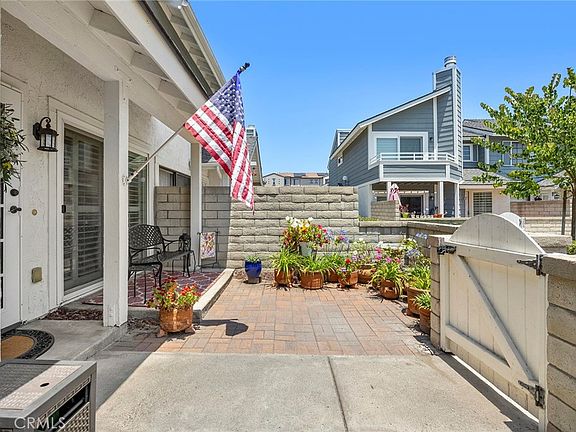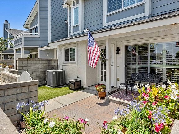 Welcome to Carbon Creek, a Cape Cod-style FHA-approved community in West Anaheim. This desirable 95-unit complex enjoys winding pathways, green space, and lush plantings throughout. Set towards the rear of the community, away from the hustle and bustle and with pool views, beautiful details are evident the moment you walk up to the unit's front door: a front patio features brick hardscape and artificial turf for easy maintenance. Two upgraded entry doors -- a premium Titan with built-in, perforated aluminum screen for the ultimate in security protection, and an insulated 6-panel Reliabilt front door -- usher you into the main living area. A modern, renovated staircase with custom espresso-stained handrailing and brushed metal accents are set off by neutral gray-hued walls; crisp white baseboards complete the space. Rich, deep brown Shaker-style soft-close cabinetry in the kitchen is flanked by stainless steel appliances, undermount kitchen sink, and deck-mount pull-down kitchen faucet with sprayer; the glistening glass tile backsplash and white quartz counters complement each other. Upstairs, the primary suite features a lofty ceiling with fan, walk-in closet, and split vanity, while two additional bedrooms offer ample storage and west-facing windows. Additional features inside include plantation shutters throughout, dual-pane windows, recessed lighting, new (February '25) water heater, reverse osmosis system and garbage disposal, custom kitchen window shade, Pergo Max Premier laminate flooring in "Smoked Chestnut" with premium underlayment, and an upgraded electrical panel. In the direct-access, two-car garage, you'll find a whole-unit water softener, built-to-order cabinetry and laundry connections. This one-of-a-kind residence enjoys a prime location in the heart of North Orange County, and is close to freeways, shopping, schools, and theme parks.