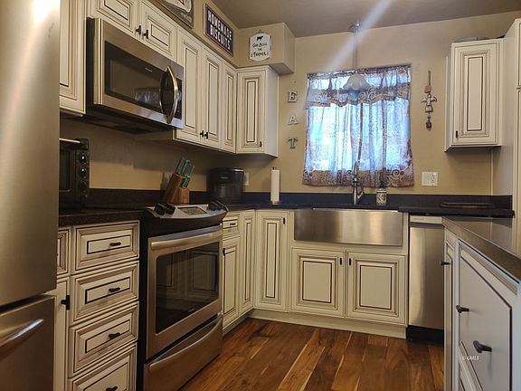 Country meets City in this 2000 square foot home that has had a renovation done in 2019. Kitchen was done by Casa Bella Builders, Electric was redone and a new electric box, wood flooring in the living areas of home and tile flooring in bathrooms and a newer roof. The property has over 9 acres that includes a bunk house and a 8 mare barn with attached corrals. The mare barn has additional rooms in it for a tack room and storage. There is an additional large shed/workshop by the corrals as well. The property has a large open area on the way to the corrals for large vehicle parking for boats, trailers, multiple cars or whatever you have. There is an RV hook up for power by the main house. The home has an attached 2 car garage that leads into a large laundry room with tons of storage. This home has everything you need and more.