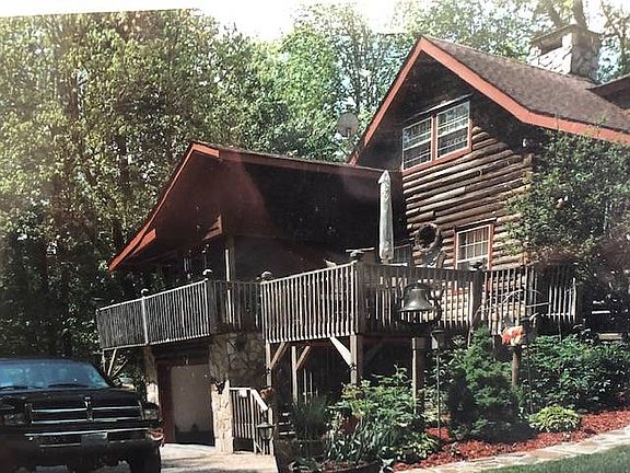 Beautiful log cabin located on 13+ acres- adjoining the National Forest. Features three bedrooms, two full baths, den, living room, dining room, lots of area for outdoor entertaining!! Large deck area with a gazebo! Detached two car garage and more! Very private location with mountain views and a stream. Property adjoins Hwy #221. Must see!! REDUCED $329,000.