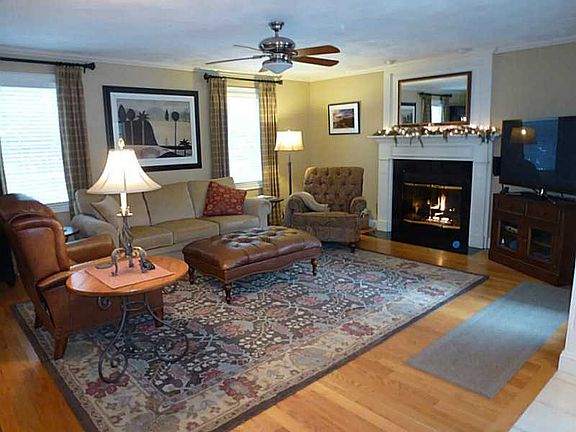 Fabulous location for an active family! Solid 4 bedrm colonial on beautiful piece of land --abutting town park area/tennis courts; Perennial filled yard; granite, stainless eat-in kitchen open to gas fireplaced family rm; Hardwoods;fin. rec rms;
