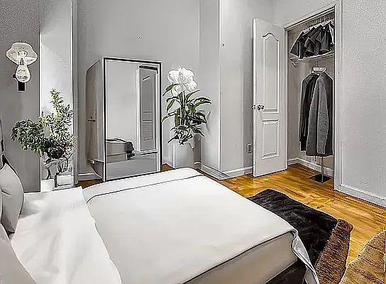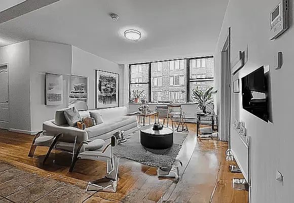 Big windowsStorage closetHardwood floorsOpen kitchen areaSpacious apartment