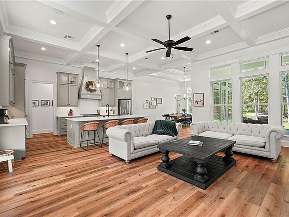 Tired of looking for just the right house & thinking you will HAVE TO build? Well, now you won’t have to! This custom-built beauty is located on 1.13 acres. The perfect amount of trees to give you the “away-from-it-all” feeling without blocking lovely views everywhere you look. Wonderful floorplan is open AND split in more than 1 way; the primary is separate from the other 3 bdrms & the office, while bdrm #4 is tucked away as well, right next to FULL BATH #3; offering privacy for your guests, in-laws, or that teen wanting their own space. Every custom detail was lovingly picked out by the owners & there are WAY too many amenities to list here; you truly must see it in person to appreciate it! 4 bedrooms/3 full baths, plus office, plus massive dining area. Closets & storage galore. Walk-in closets, walk-in pantry, built-in cabinets/shelving in closets, great-room, & garage. Primary bath offers double-vanities; in addition to a linen closet, soaking tub & a luxurious walk-thru shower for two! 14’ coffered ceilings in great-room & kitchen; 12’ double-step up ceiling in open dining area (enough space to seat more than a dozen guests/family members).