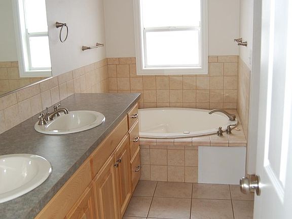 This comfortable 4 bedroom 2 bathroom home has recently upgraded bathroom and kitchen fixtures plus a complete list of features sure to make this house a home including: Tile shower and jetted tub in the master bath Tile floor and large island in the kitchen Open floor plan with great view of the fenced backyard Den with built in book case that could be used as 5th bedroom Built in bunkbeds Over-sized 2 car garage with ample of work space and storage Washer and dryer hook up Sprinkler system Air Conditioning Tenant pays all utilities.