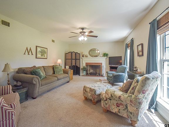 Welcome to this charming 4-bedroom, 3-bathroom home spanning 2,823 square feet. Upon entering, you’ll find a versatile area on the right with a cozy gas log, brick fireplace—ideal for a home office or extra living space. Across the way is the primary living room, featuring a warm wood-burning fireplace. From the living room, a door leads you to the kitchen and dining combo, including a gas cooktop and two double in-wall ovens. The laundry room, conveniently located nearby, includes a sink and ample space for your washer and dryer. The formal dining room is a bright and inviting space, with numerous windows and a door that opens to the backyard, allowing plenty of natural light to flow in. The master bedroom on the main level is generously sized, offering a cozy sitting area. The master bathroom complements this with a spacious walk-in shower. Upstairs, you’ll find three additional bedrooms, each with its own unique charm. One of the bathrooms is delightfully cute, featuring a charming pink color scheme and a shower/tub combo that adds a touch of vintage flair. Another bathroom is generously sized offering dual sinks and a walk-in shower. Storage is abundant in this home, with a large floored attic in the garage, perfect for keeping your belongings organized. Additionally, there is an extra floored attic space off the two upstairs bedrooms, providing even more storage options. Outside, the backyard is a true oasis, complete with an open patio and a large, well-maintained lawn. In addition to the two-car garage, there is a top-covered carport, perfect for an RV, situated next to a handy storage shed. This home is truly a gem, offering both comfort and practicality in a desirable setting.