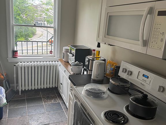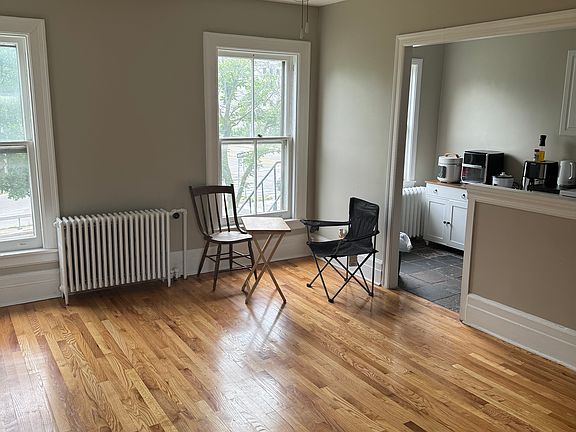 Light and bright second floor flat in Edwardian Mansion. Gleaming hardwoods, stone countertops, slate tile floors, stove fridge dishwasher and microwave. All white new kitchen cabinets and appliances. Includes the heat and hot water in rent. Off street parking. 660+ credit minimum and three times rent income threshold. One year lease for 1500 a month hot water Tenent pays electric and cooking gas. One car off street parking and time and parking lot behind property.