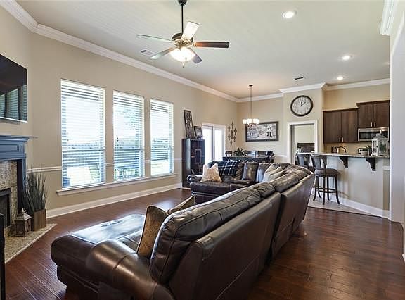 Like new, energy efficient home in convenient location & great school district, features an open floor plan, 11' ceilings, wood floors in living area and halls, gas fireplace, & crown molding. Kitchen boasts SS appliances & 3CM granite counter tops. Masterbath has jetted tub, separate shower & his/her sinks. Enjoy sitting on your large covered patio overlooking a nice fenced yard. Other extras include tankless water heater, radiant barrier, decking in attic and much more. Also a community pool & playground.