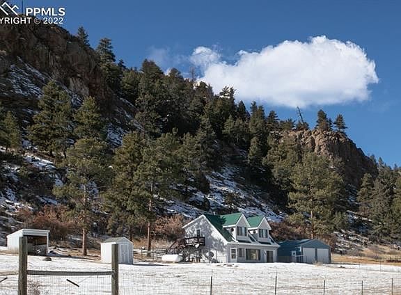 Serenity and peace abound as you enter the beautiful meandering driveway to this mountain home on 8.63 acres. Beautiful Lakemoor West subdivision home. Great full time residence or an escape to the mountains! The location is perfect, close to Four Mile creek and land borders BLM land. Great main level with a large great room, 3/4 bath and laundry, dog friendly ceramic tile flooring, a large kitchen with island, and a wood stove to keep the home warm on those chilly Colorado nights. Two bedrooms upstairs, a loft, and a full bath complete the home. This home has breath taking 360-degree views of mountains, meadows, and rock formations. The back of the property and the bordering BLM land can be accessed through the access gate located at mile marker 5 off of County Road 11 also called High Park Road. The two car, over-sized, detached garage is newly built. There is a shed and a loafing shed. Two horses are allowed on the property. There is a new cistern that has been added to the property. This property is just a couple minute walk to Four Mile Creek where members of the Lakemoor West Owners Association can fish Four Mile Creek and enjoy the large covered picnic area and open space located off Lakemoor Drive. This beautiful home and property is not one you want to miss!