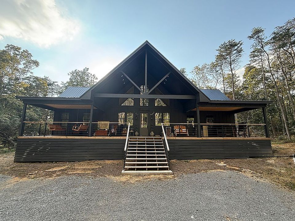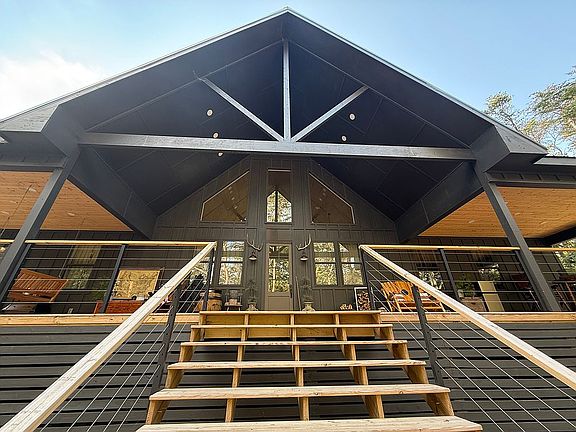 Welcome Home to Mentone! Nestled in the tranquil mountains and completed in May 2025, this moody modern cabin offers the perfect retreat. Set back along a semi-private winding driveway, the wooded lot provides just the right balance of seclusion and convenience—only minutes from charming downtown Mentone. Step onto the expansive front porch that spans the entire width of the home—ideal for entertaining guests, curling up with a book, or simply enjoying the sounds of nature and the occasional bells from nearby St. Joseph's Episcopal Church. Inside, an open-concept layout welcomes you, seamlessly connecting the dining area, family room, and kitchen. Oversized windows flood the space with natural light by day and provide moonlit views by night. The family room features a stunning shiplap and stone fireplace under a tongue-and-groove ceiling, adding warmth and rustic charm. The kitchen is equipped with elite appliances, sleek white cabinetry, and elegant slate countertops. Throughout the home, custom-designed walls and hardwood flooring echo the natural surroundings, blending rustic charm with modern comfort. This thoughtfully designed home includes three spacious bedrooms, each with its own private bathroom and custom walk-in closet. Additional features include: A hallway half-bath for guests A walk-in pantry A linen closet and an extra walk-in storage closet A dedicated walk-in laundry room A serene back porch and deck area A custom front door Along with, plenty of space to expand with or add personal touches to the land with 2.26 acres available. Whether you're seeking a full-time residence or a peaceful weekend escape, this property offers endless potential. Some furnishings available. Schedule your private showing today and discover your mountain sanctuary.