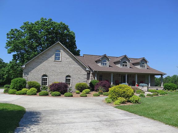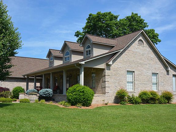 Beautiful custom built 2 story basement house located on 63 +/- acres located in a unrestricted private setting at end of road. Large master bedroom & bathroom , 2nd and 3rd bedrooms located on main floor . Upstairs with 2 bonus rooms with closets and plumbed for half bath. Dining and living room with gorgeous hard wood flooring & trey ceilings, computer room , large utility room, sunroom. Nice finished family room in basement with plenty of storage. Work shop with electric and heat. Equipment storage building, small pond , many large garden areas. Approx level 10 acres of pasture around home. Ride ATV, or saddle up your horses and enjoy many hours on the trails thru out property where you'll be amazed at all the bluffs and rock formations right in your own backyard.